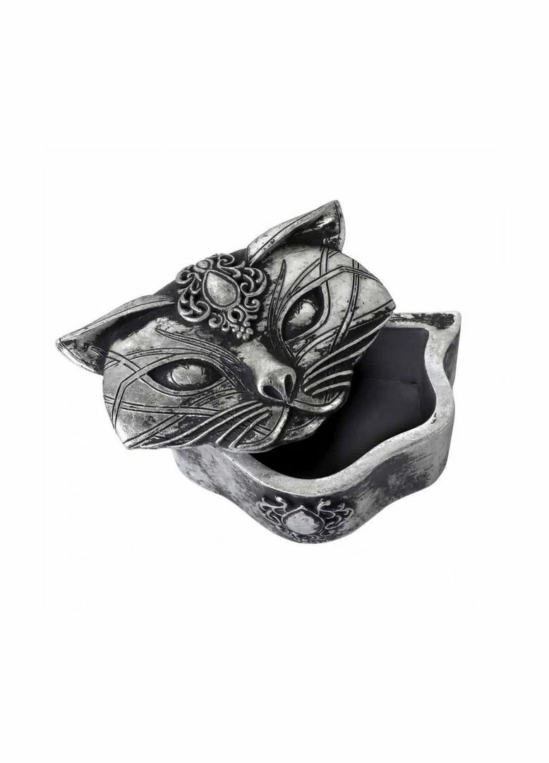 - The Alchemy Gothic Sacred Cat Trinket Box is a stunning piece of silver homeware, perfect for adding a touch of elegance and mystique to your decor. This intricately designed trinket box features a sacred cat motif, symbolizing protection and grace.