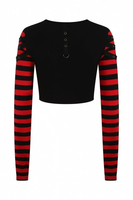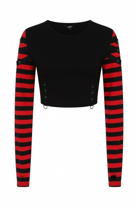 - Elevate your wardrobe with the Banned Apparel Ladies Banned Lycoris Top. Featuring a striking black and red design, this top is perfect for making a bold fashion statement.