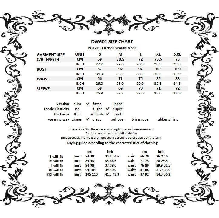 - For the perfect fit please see Dark in Love’s size guide in the images.