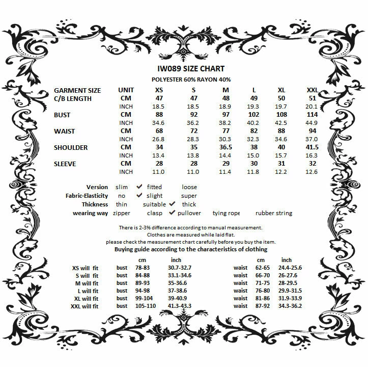 - For the perfect fit please see Dark in Love’s size guide in the images.