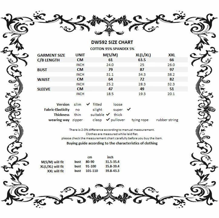 - For the perfect fit please see Dark in Love’s size guide in the images.