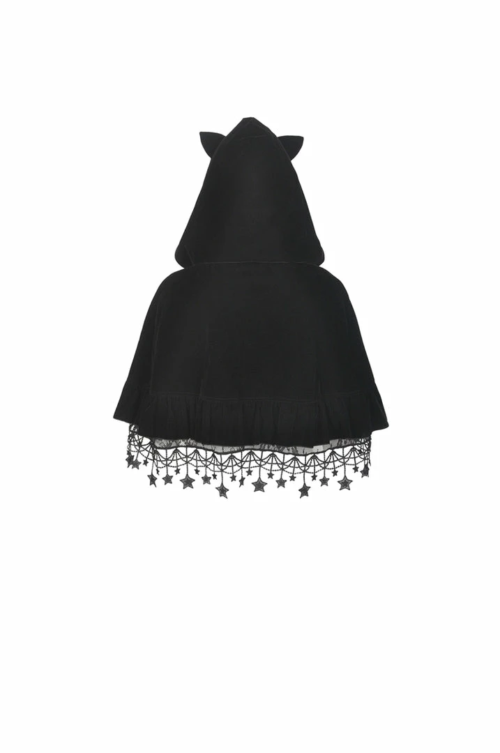 Dark In Love Star Cat Velvet Hooded Cape for Women | Elegant Ladies Cape Jacket