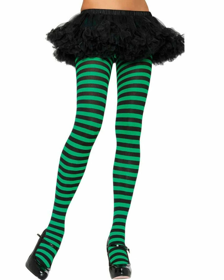 - Available in a unique black and green striped pattern, these tights are a must-have accessory for any gothic or alternative fashion enthusiast.