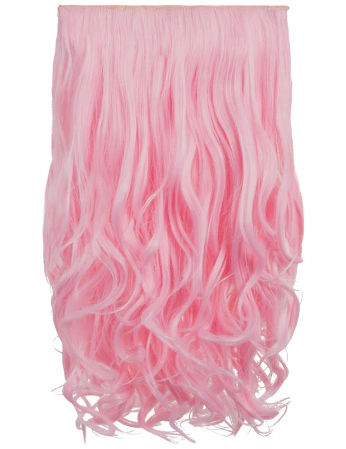 High Quality, excellent value synthetic clip in hair weft in a pale Rose Quartz Pink. This stunning, 20 inch long, thick, wavy hair weft has 4 clips to keep it in place and adds a full hair of hair to take your style to the next level. It looks great under bright or natural hair, especially if your hair is layered and it can be easily cut to suit your hair style.