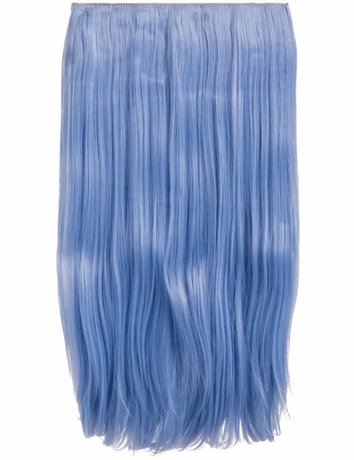 High Quality, excellent value synthetic clip in hair weft in a light Serenity Blue with mild purple tones. This stunning, 24 inch long, thick hair weft has 4 clips to keep it in place and adds a full hair of hair to take your style to the next level. It looks great under bright or natural hair, especially if your hair is layered and it can be easily cut to suit your hair style.