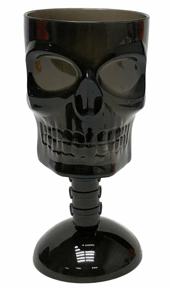 Awesome skull shaped plastic wine glass from Gothic Gifts complete with vertebrae inspired stem. Handwash recommended.