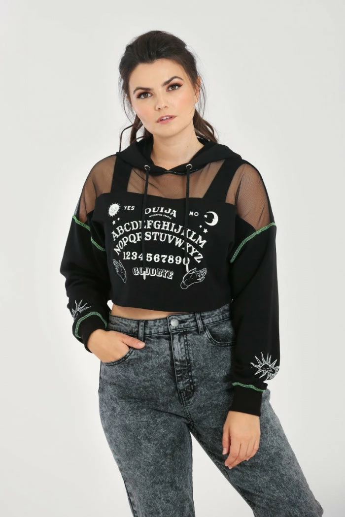 - The Hell Bunny Ouija Hoodie is a must-have for any wardrobe, offering a unique and stylish design that stands out. Perfect for plus size ladies, this hoodie combines fashion with comfort.