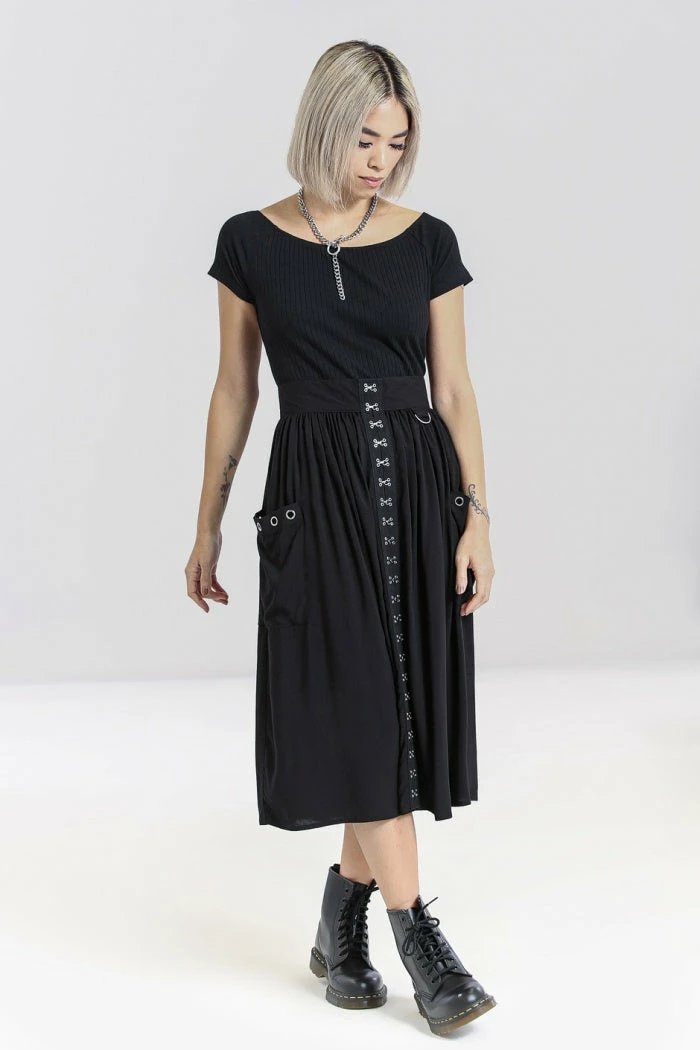 - Step back in time with the Hell Bunny Tabitha Skirt. This ladies’ skirt features a classic retro design with a modern twist, making it a versatile addition to any wardrobe.