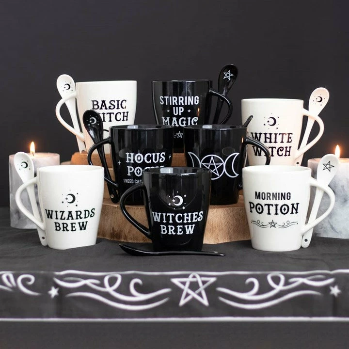 - Enhance your coffee or tea ritual with the Hocus Pocus Gothic Mug and Spoon Set. This unique set combines functionality with a gothic aesthetic, making it a perfect addition to your homeware collection.