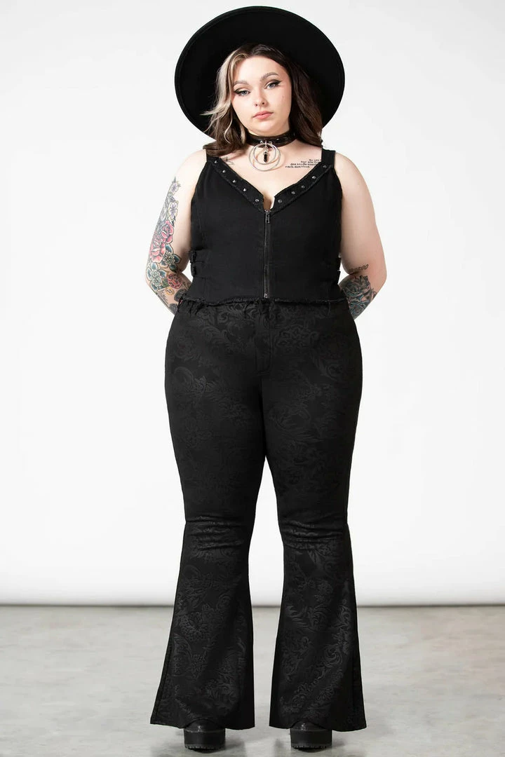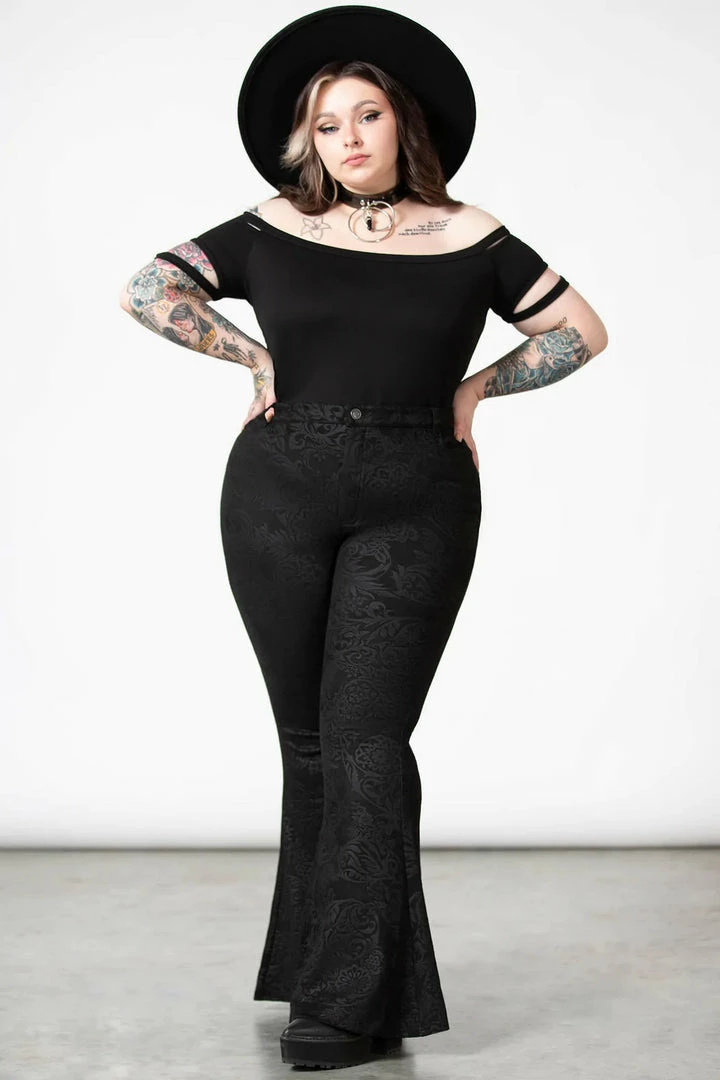 Killstar Black Lily Bell Bottoms | New Arrivals | Plus Size Gothic Trousers