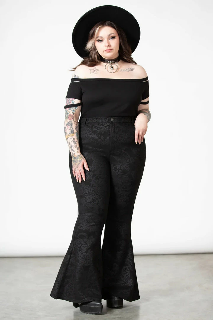 - Available in plus sizes, the Killstar Black Lily Bell Bottoms are designed to fit and flatter, providing a perfect silhouette for every body type.