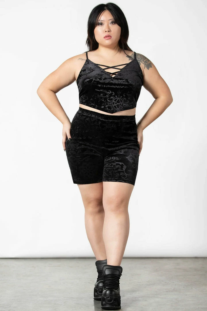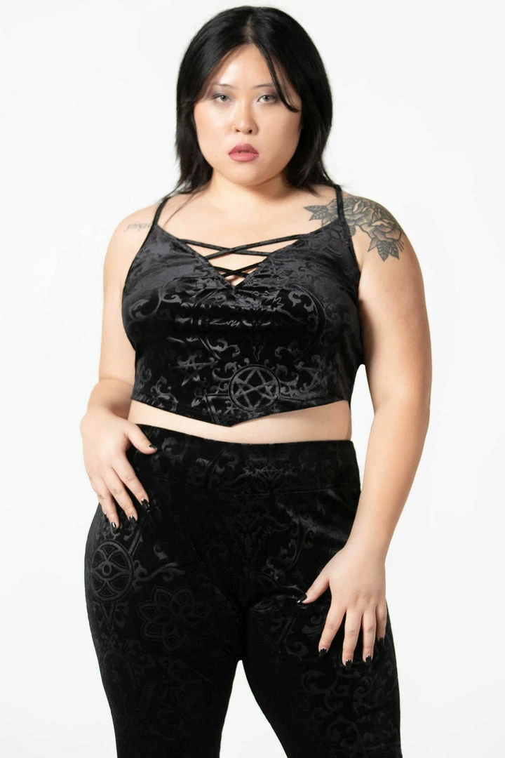 Killstar Blasphemia Strappy Top for Ladies | Gothic Plus Size Fashion | Black Mesh Crop Top
