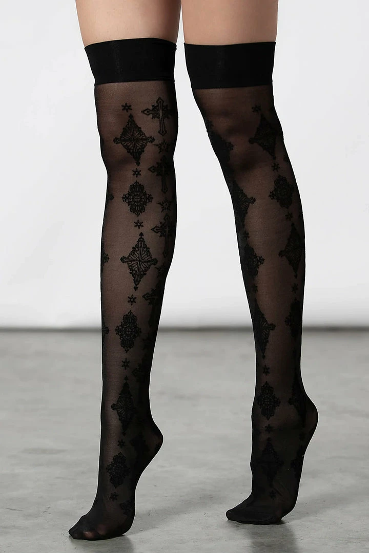- Enhance your gothic wardrobe with the Killstar Gerta Mesh Stockings. These fishnet tights feature a unique mesh design that adds a bold and edgy touch to any outfit.