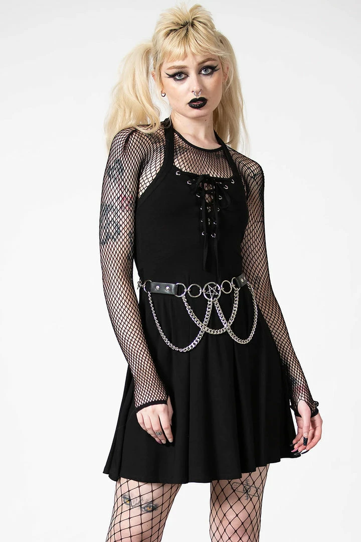 - Crafted from high-quality materials, the Killstar Gothica Halter Dress offers a comfortable and flattering fit. Its unique halter neckline and intricate detailing ensure you stand out at any event.