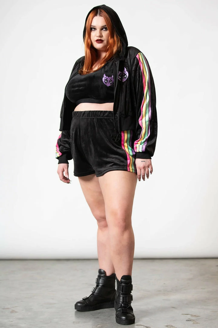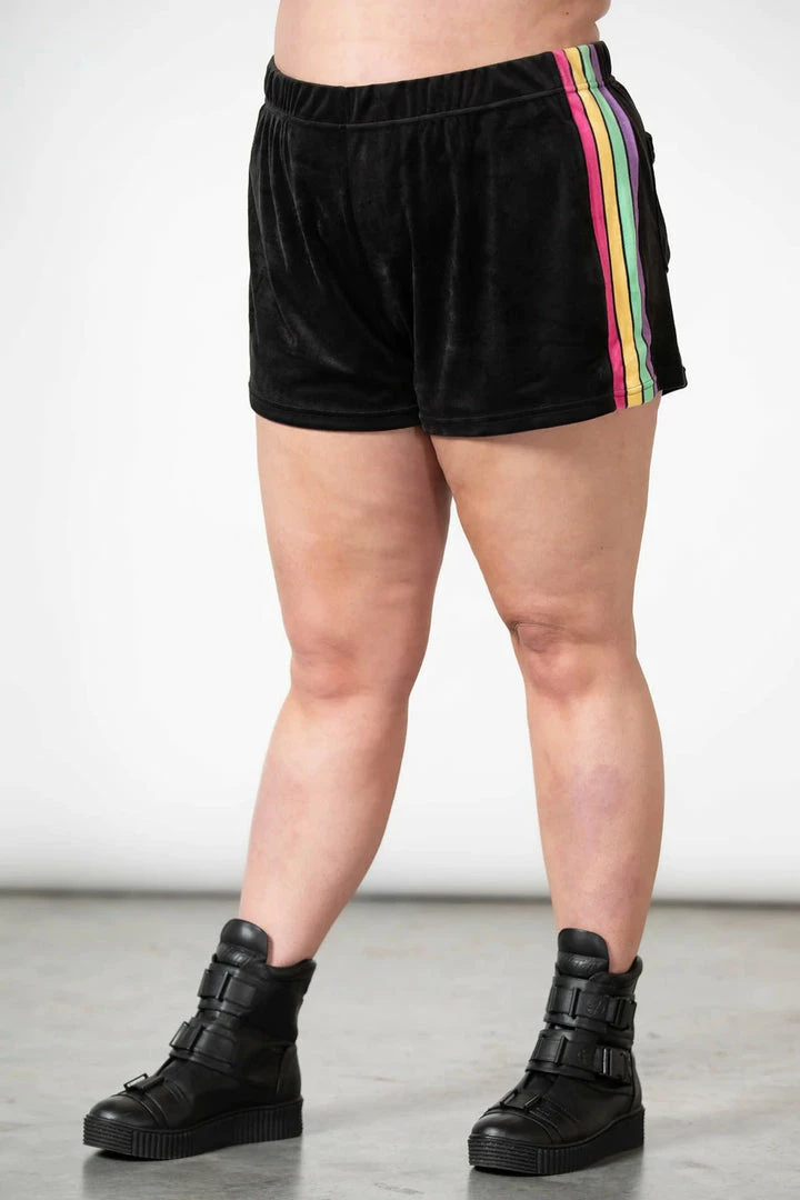 - Step into comfort with the Killstar Groovy Velour Shorts, designed for the modern lady who values both style and comfort. These shorts are a perfect blend of soft velour fabric and a relaxed fit, making them ideal for casual outings or lounging at home.