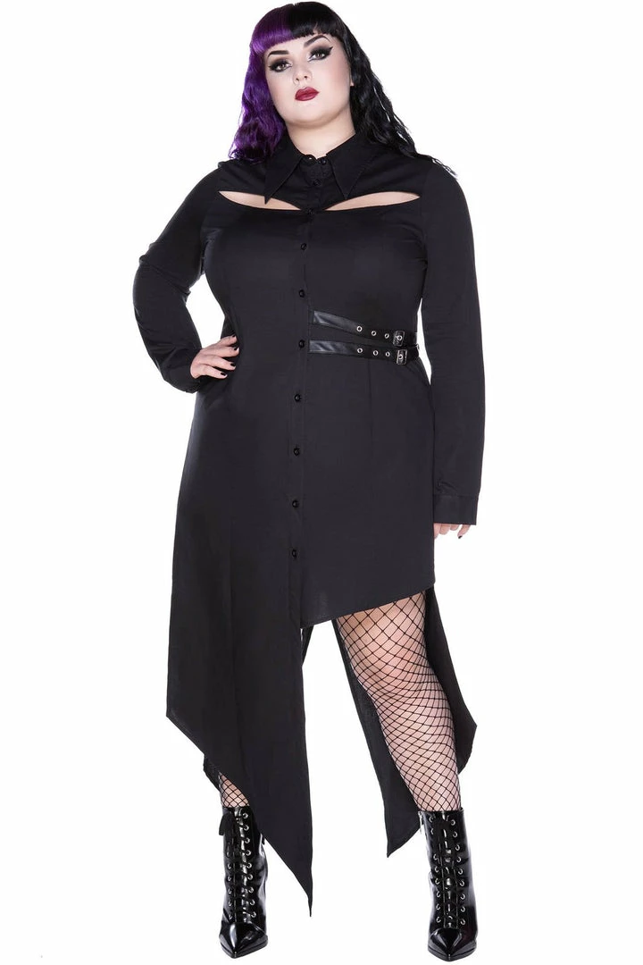 - Available in a range of plus sizes, the Hauntress Shirt-Dress ensures a comfortable and flattering fit for all body types. The high-quality fabric guarantees durability and long-lasting wear.