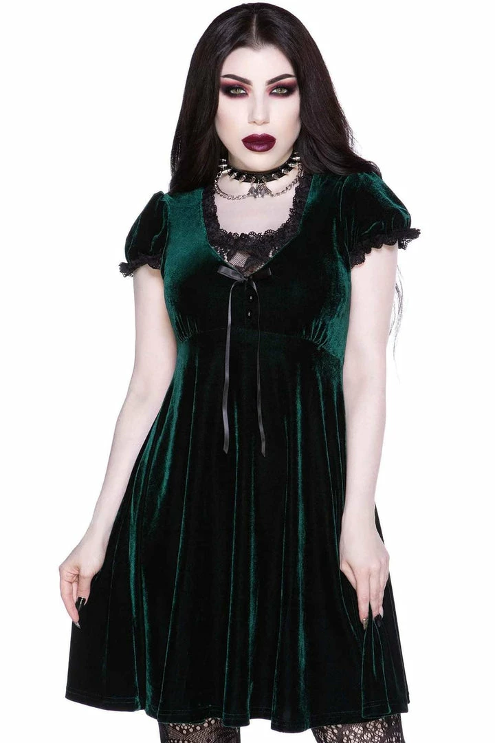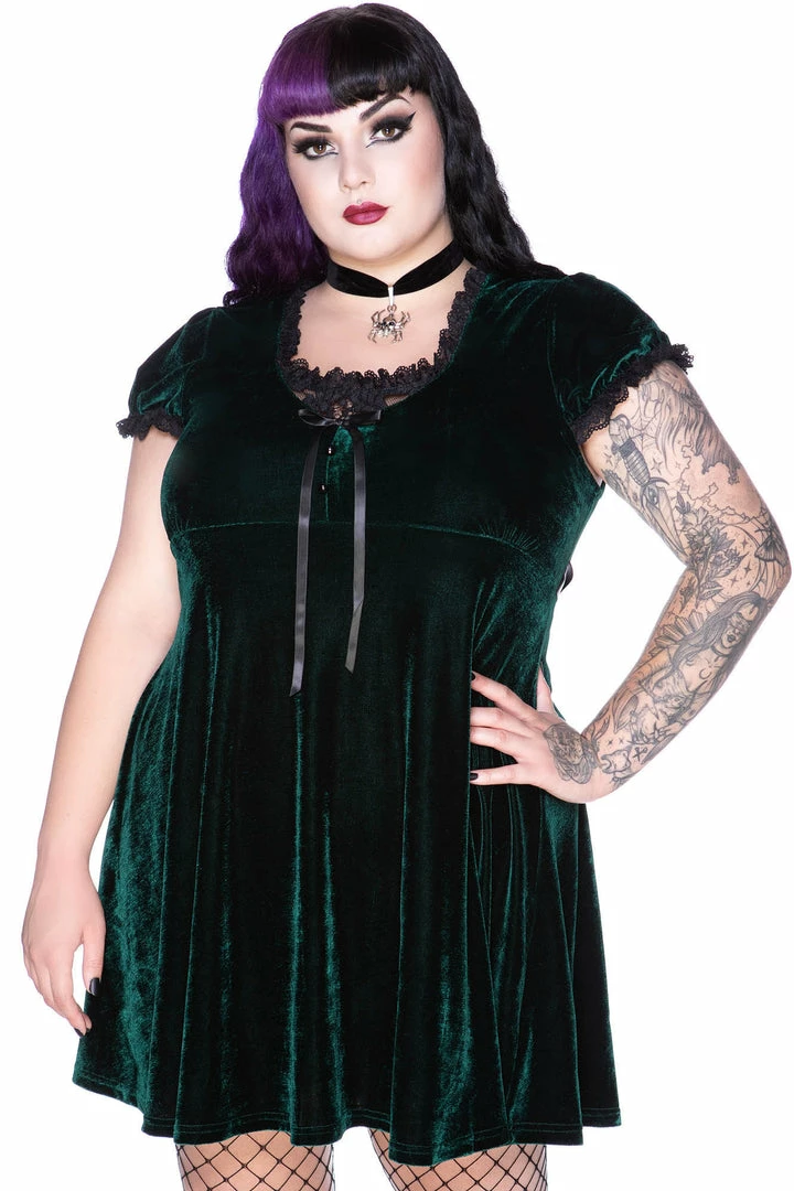 - Elevate your wardrobe with the Killstar Heather Velvet Babydoll Dress in Emerald. This plus size gothic dress features a soft velvet fabric, a flattering babydoll silhouette, and a rich emerald color.
