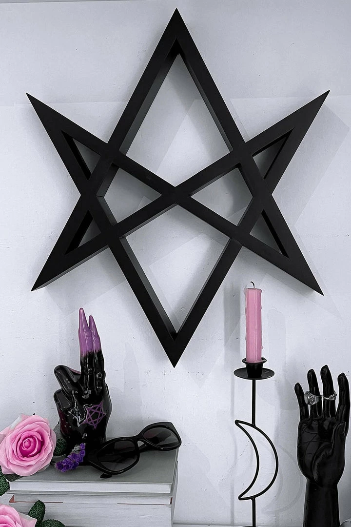 - Easy to assemble and install, the Killstar Hexagram Shelf is a versatile piece that can be used in various rooms, from the living room to the bedroom.