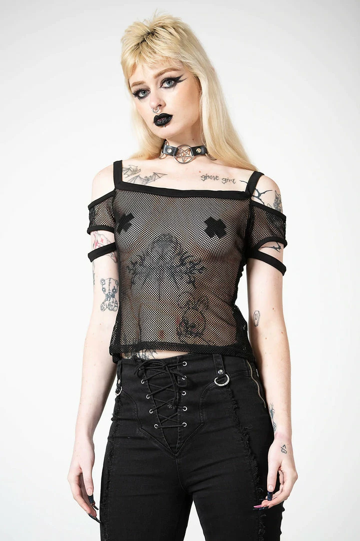 - The Killstar Huntly Fishnet Bardot Top is a must-have for any gothic fashion enthusiast. Featuring a unique fishnet design and bardot neckline, this top offers a bold and edgy look.