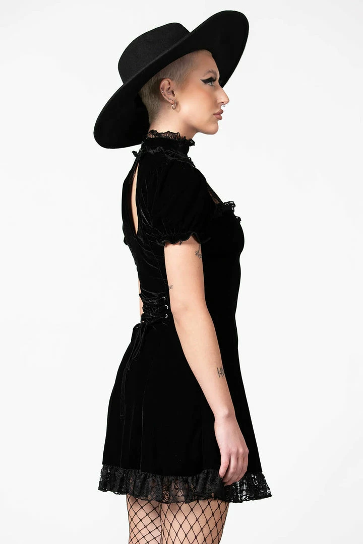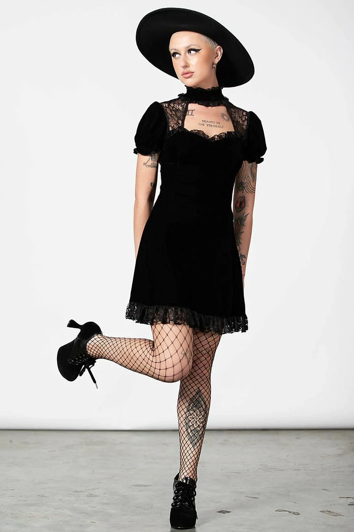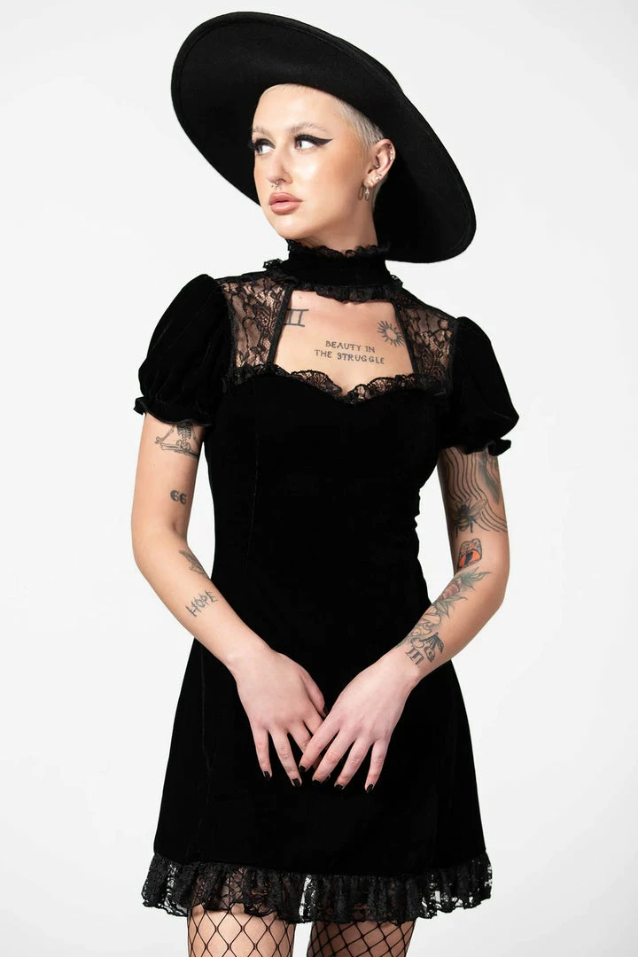 - Elevate your style with the Killstar Julienne Velvet Keyhole Dress, designed for the modern gothic fashion enthusiast. This dress features a luxurious velvet fabric and a unique keyhole neckline.