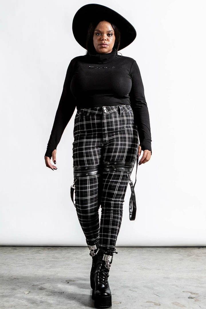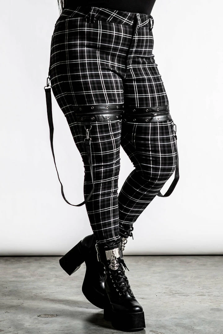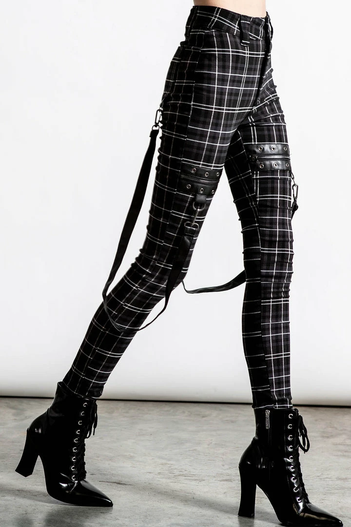 Killstar Ladies Dead Resistance Ash Tartan Skinny Trousers | Plus Size Gothic Pants