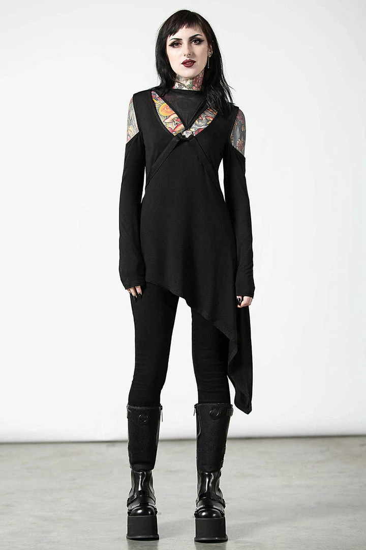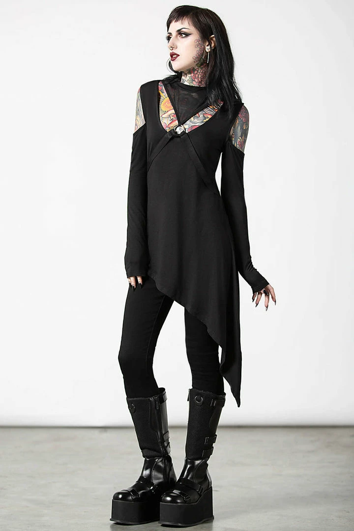 Killstar Ladies Turbulent Transit Asymmetric Top | Plus Size Gothic Tops