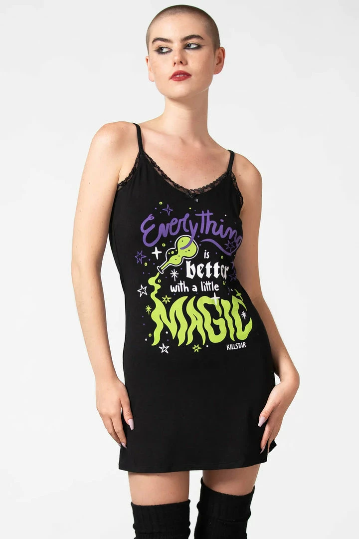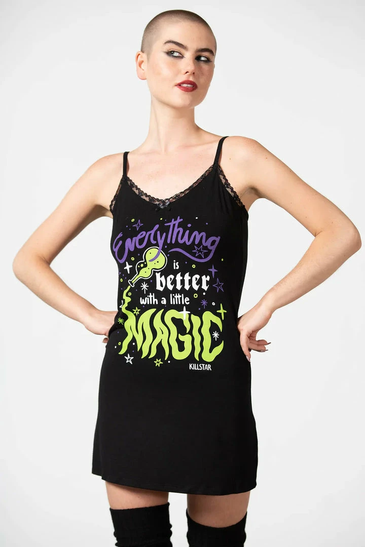 - Elevate your style with the Killstar Magic Night Cami Dress, a chic and edgy piece from the renowned Killstar brand.