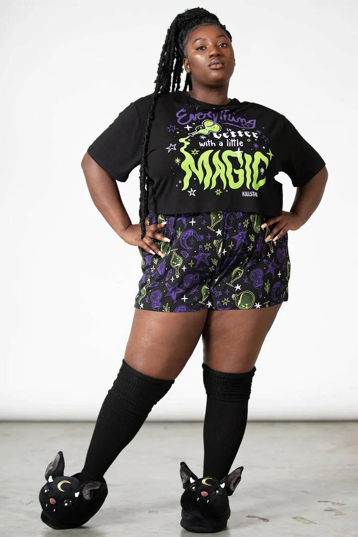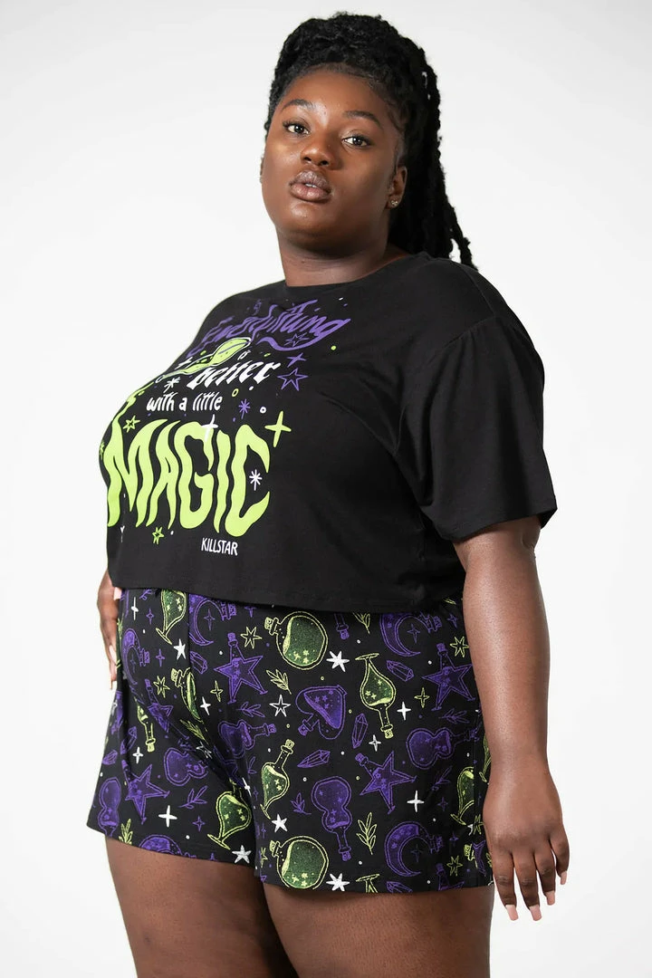 - Discover the enchanting Killstar Magic Potion Shorts, a perfect blend of gothic style and comfort. These new arrivals are designed for women who love unique and bold fashion statements.