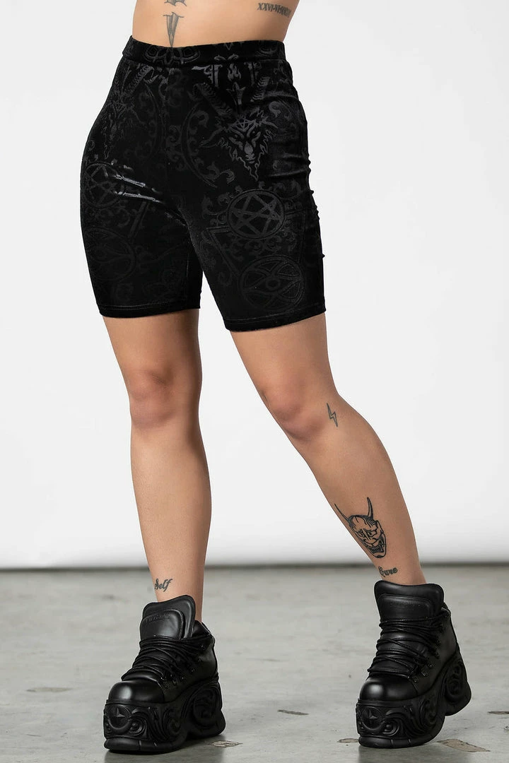 Killstar Misfortune Velvet Cycle Shorts for Ladies – Plus Size Gothic Leggings
