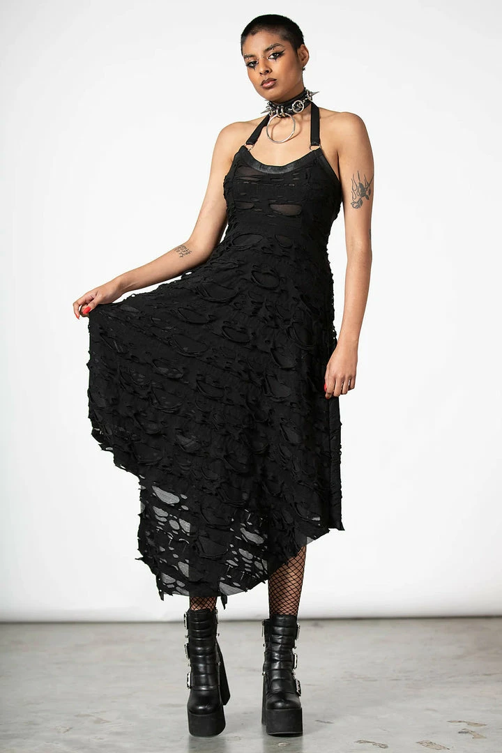 - The Killstar Nightwire Halter Dress is a stunning gothic-inspired piece designed for women who love bold and unique fashion. This dress features a halter neckline and a flattering fit that accentuates your curves.