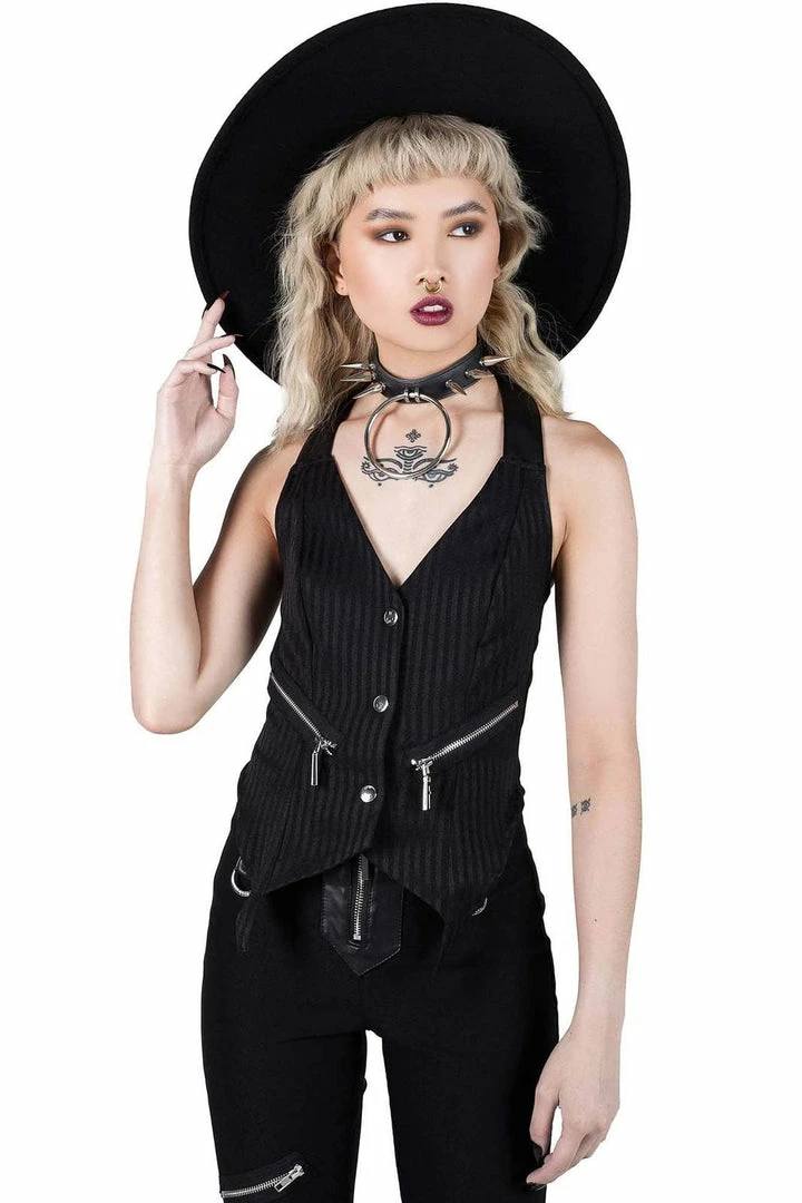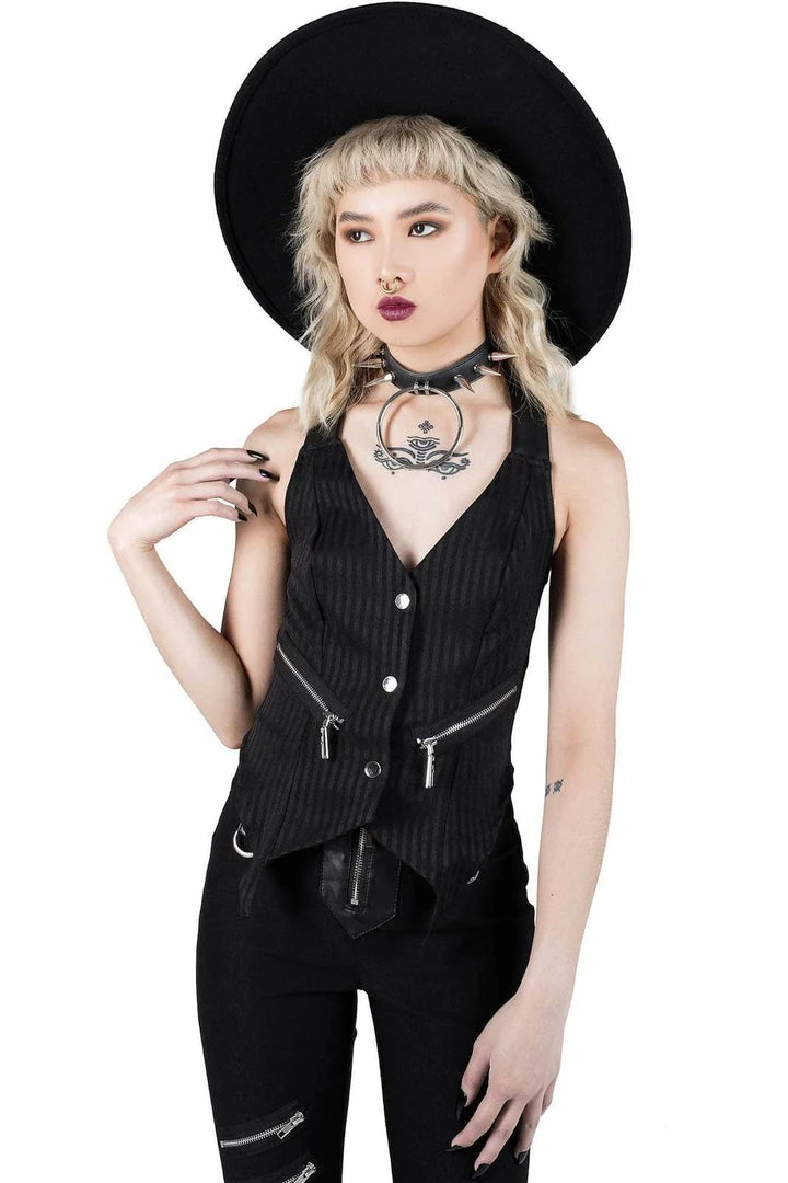 Killstar Office Riot Chain Vest Pinstripe – Gothic Punk Women’s Top | Killstar Official