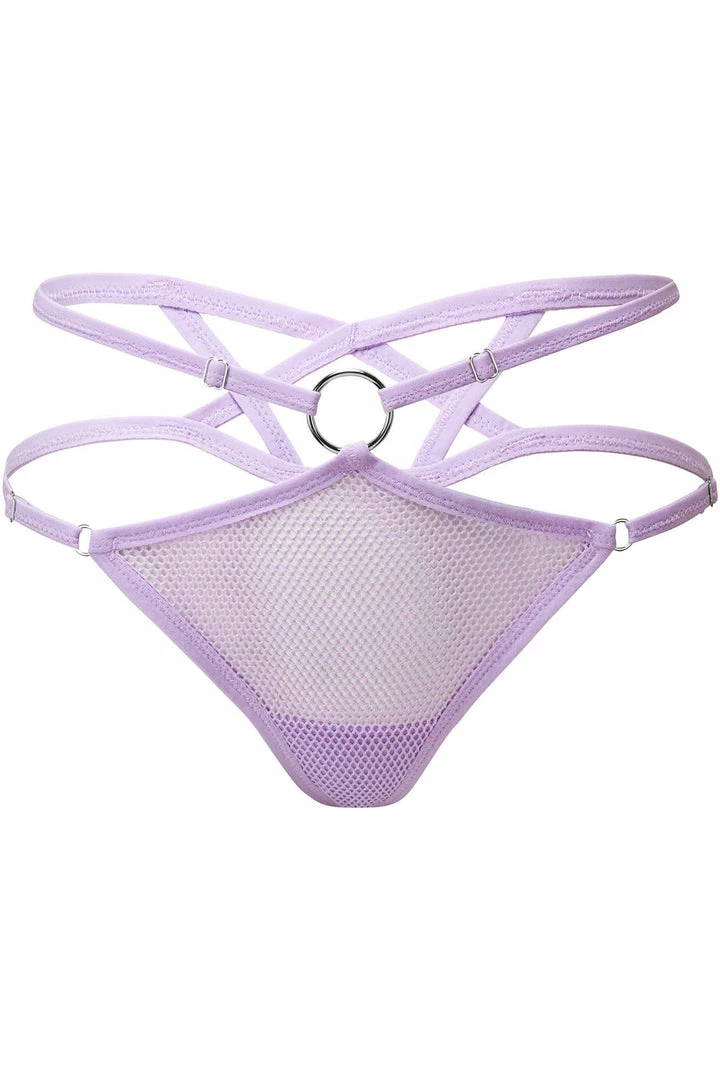 - Crafted with high-quality fishnet material, this panty offers a comfortable fit and a striking look. The lilac color provides a soft yet bold contrast to traditional black lingerie.