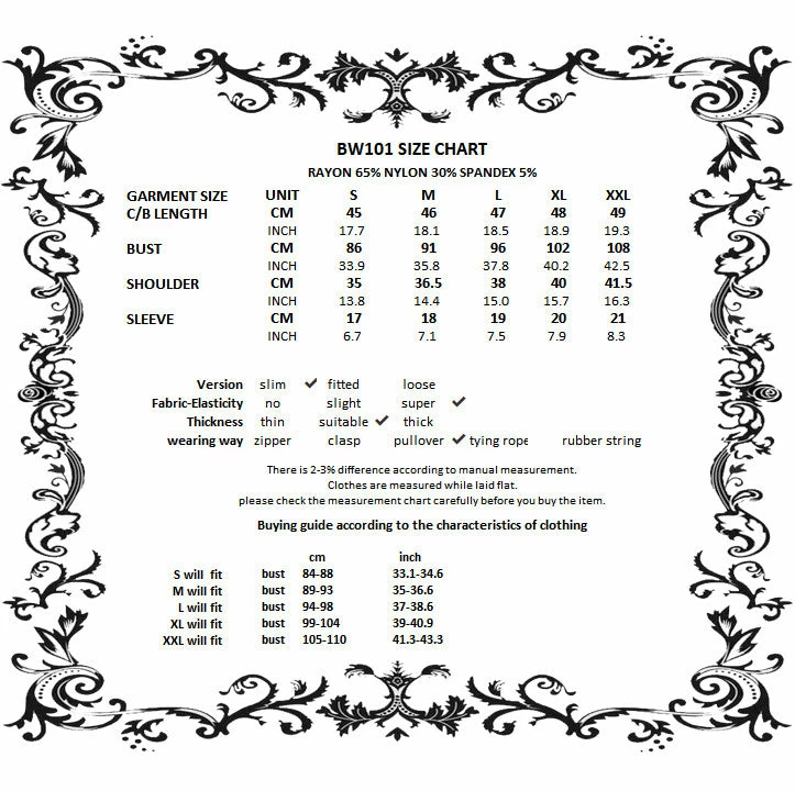 - For the perfect fit please see Dark in Love’s size guide in the images.