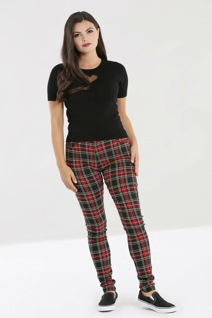 - Available in plus sizes, the Hell Bunny Clash Skinny Trousers are designed to fit and flatter a variety of body types. Embrace your curves with confidence.