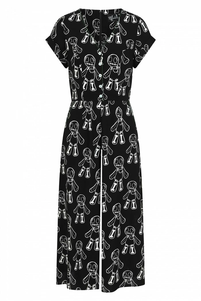 - Step into vintage glamour with the Ladies Hell Bunny Voodoo Jumpsuit. This stunning piece from the Hell Bunny collection features a unique voodoo-inspired print, making it a standout addition to your wardrobe.