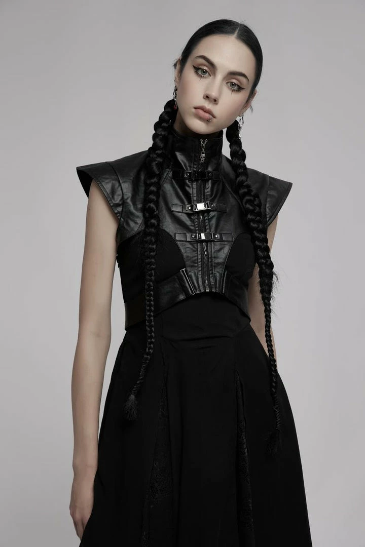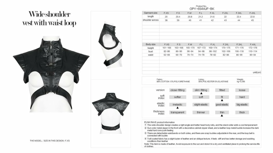 - Make a bold statement with the Ladies Punk Rave Wide Shoulder Vest. This plus-size gothic top features a unique wide shoulder design, perfect for punk fashion enthusiasts.