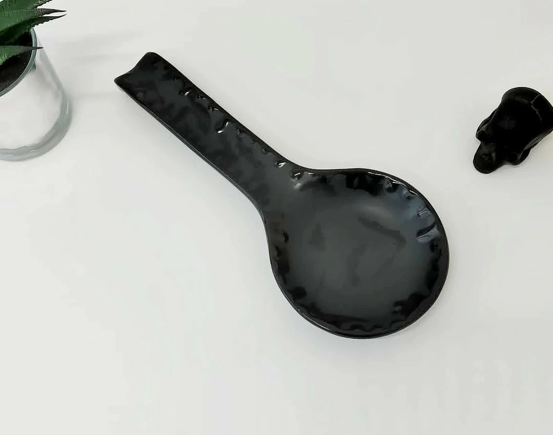 - Enhance your kitchen with the Matte Black Bat Large Spoon Rest from Weird & Wonderful Ceramics. This unique piece combines functionality with a touch of whimsy, making it a perfect addition to any modern kitchen.