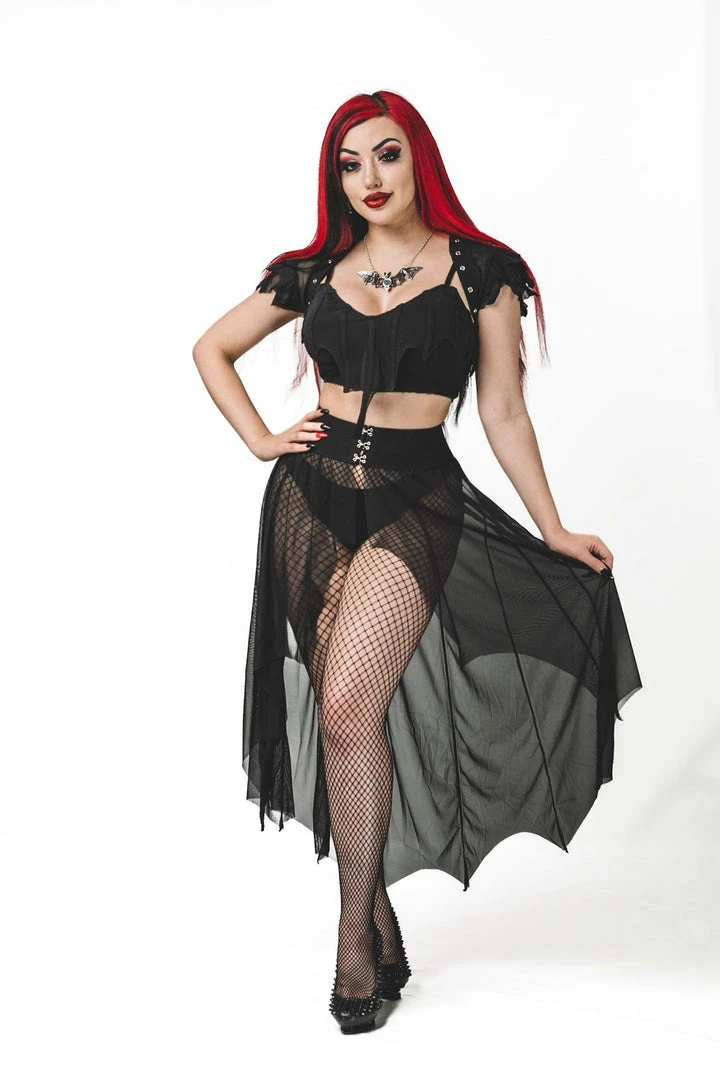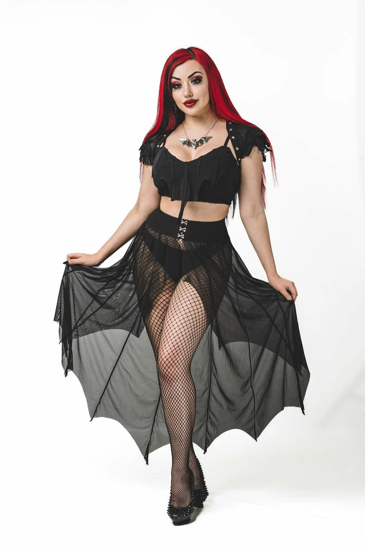 - Elevate your gothic wardrobe with the Necessary Evil Camazotz Bat Wing Lace-Up Bolero Top. This unique piece features intricate lace-up details and dramatic bat wing sleeves, perfect for adding a touch of dark elegance to any outfit.