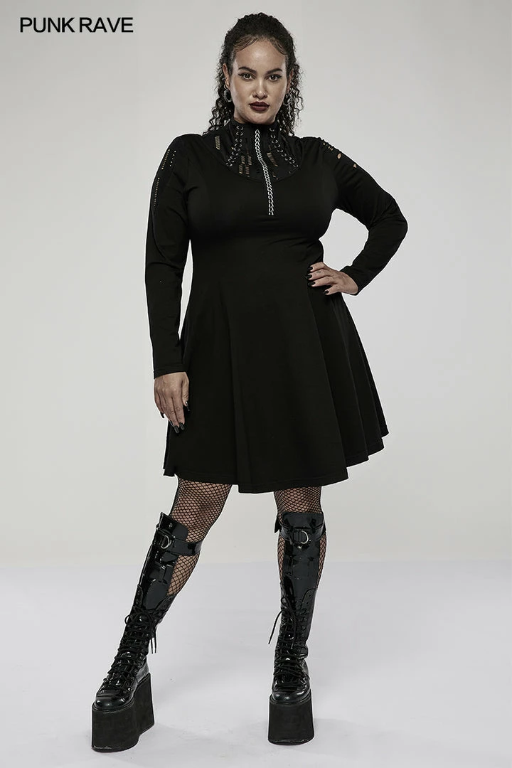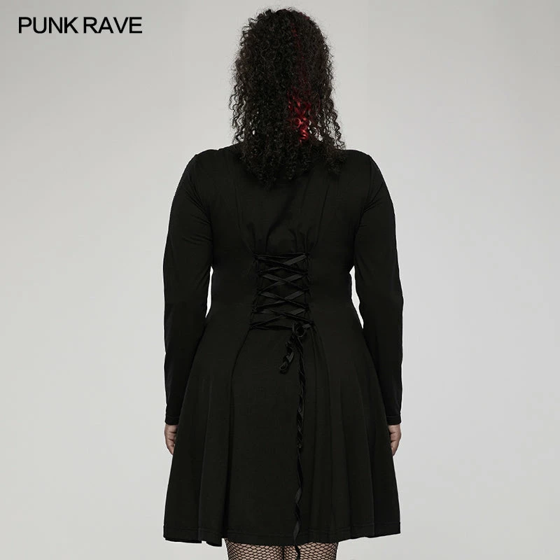 - This plus size skater dress features a flattering A-line silhouette, intricate lace detailing, and a comfortable fit, making it a must-have for any punk or gothic fashion enthusiast.
