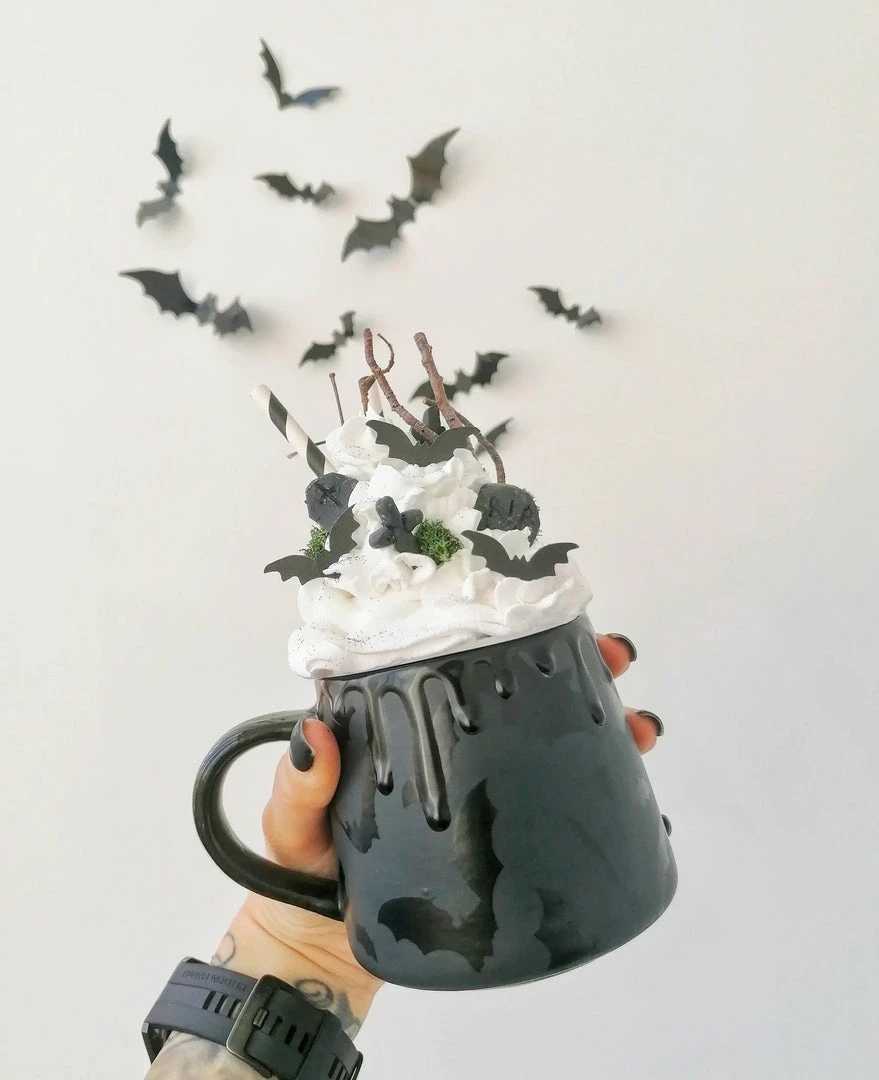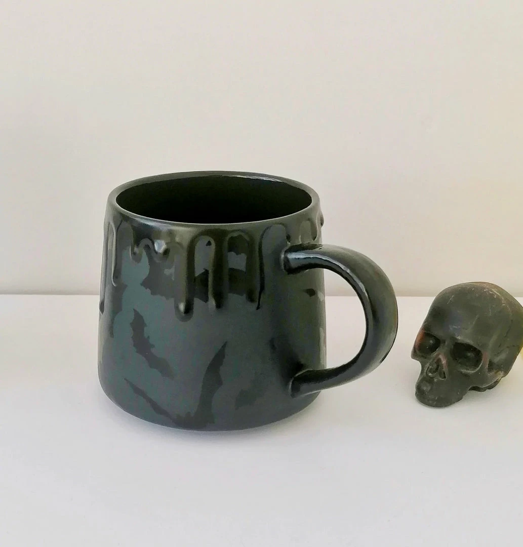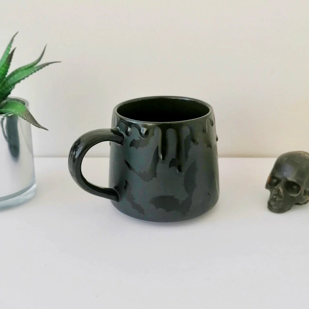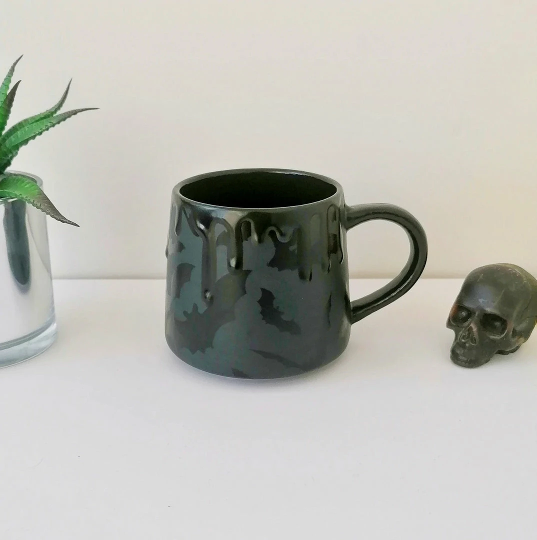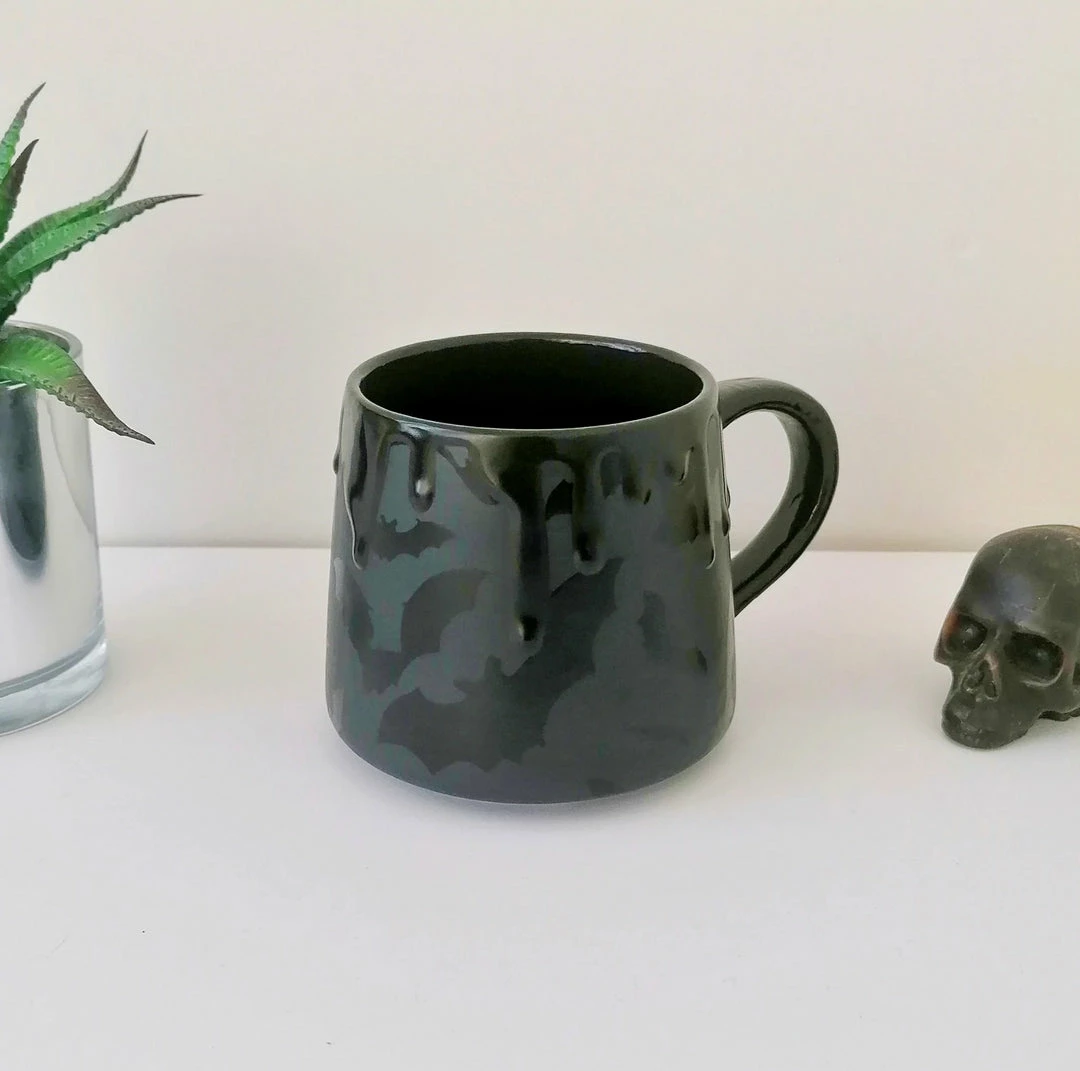 - Add a quirky touch to your coffee routine with the Weird & Wonderful Ceramics Matte Black Bat Stumpy Mug. This unique mug features a distinctive bat design, perfect for gothic and Halloween enthusiasts.