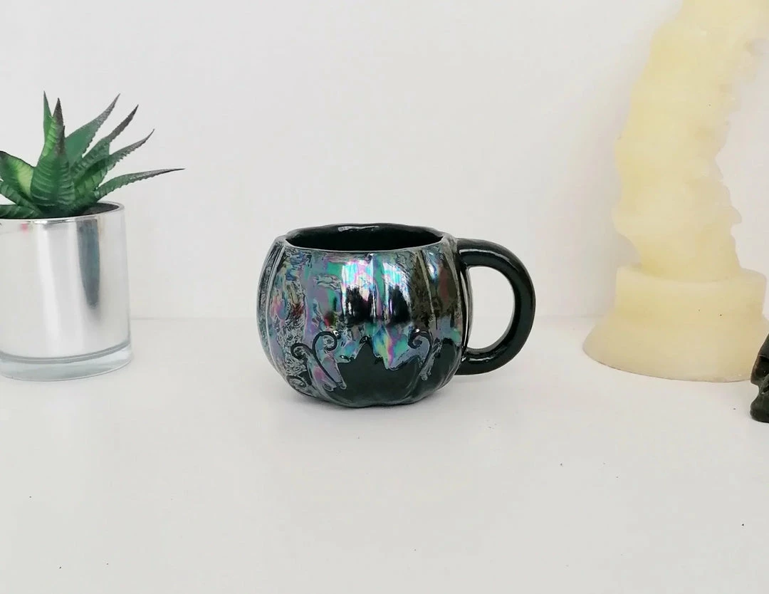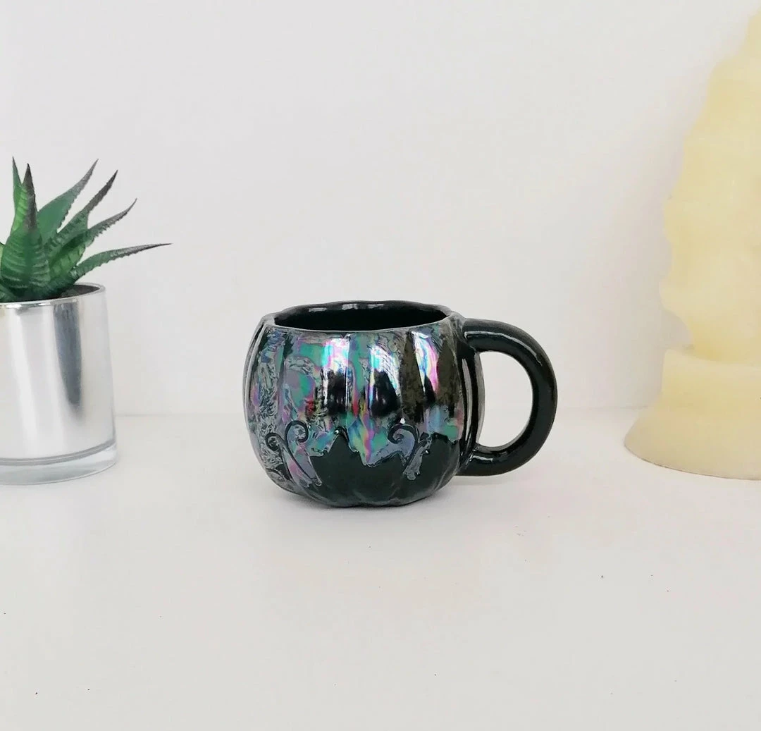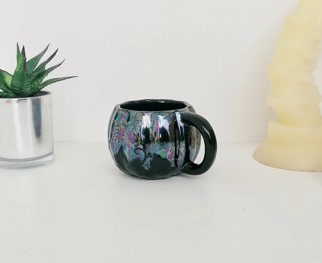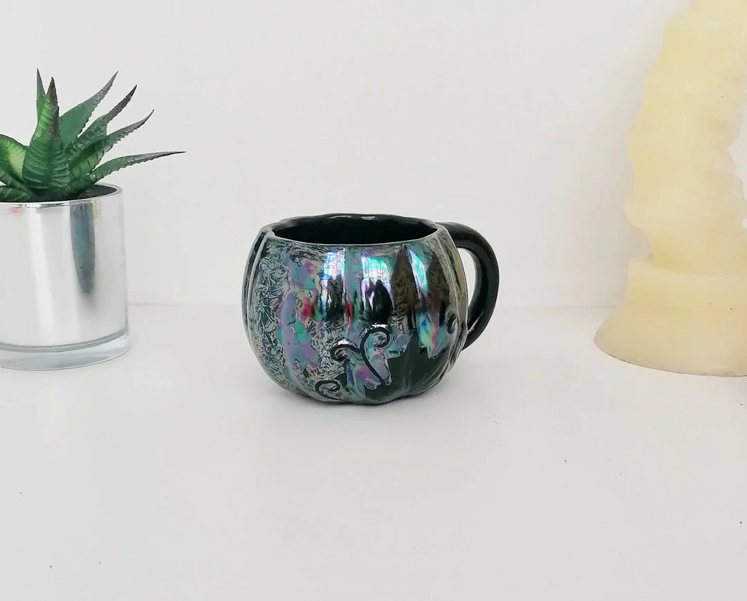 - Add a touch of whimsy to your kitchen with the New Arrivals Weird & Wonderful Ceramics Oil Slick Pumpkin Mug. Its unique oil slick design and pumpkin shape make it a standout piece.