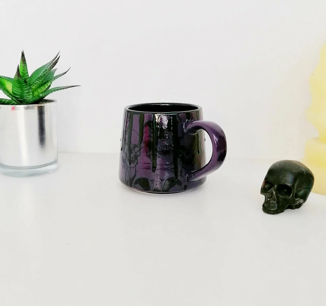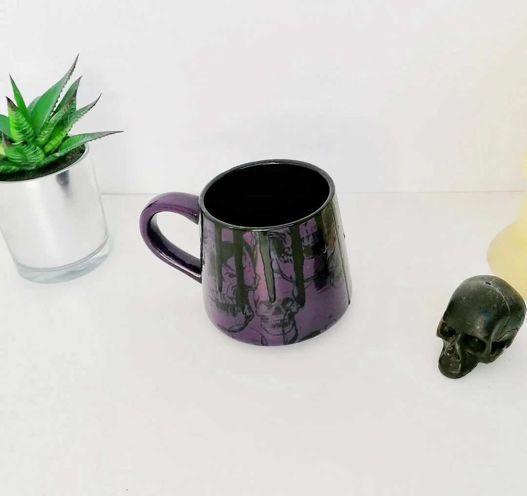 - Add a touch of the extraordinary to your kitchen or office with the Purple Skull Stumpy Mug. This ceramic mug features a unique skull design that stands out in any setting.