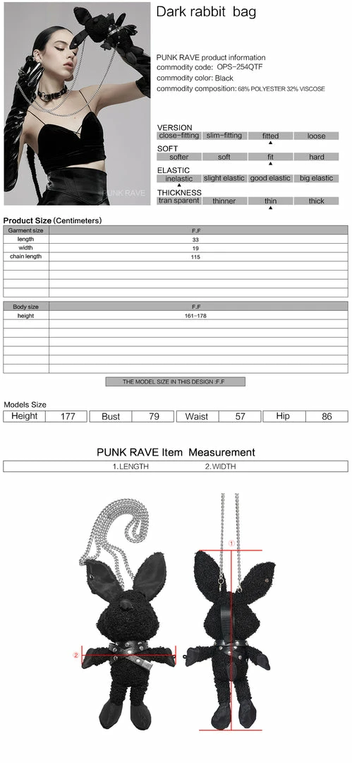 - Elevate your gothic style with the Punk Rave Dark Rabbit Plush Toy, a unique and edgy accessory from the renowned Punk Rave brand.