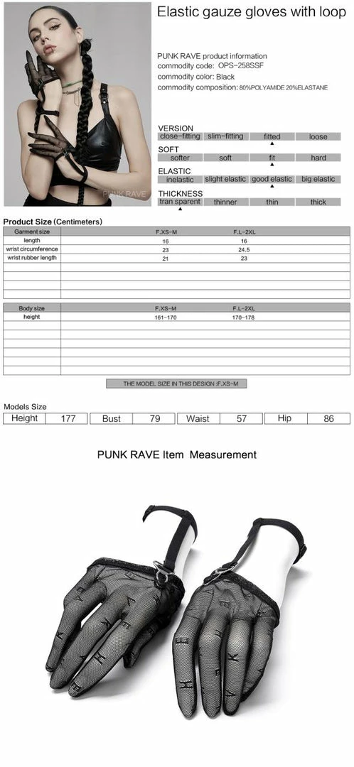- Elevate your gothic or punk style with the Punk Rave Dias Mesh Gloves. These gloves feature a unique mesh design, offering both style and breathability.
