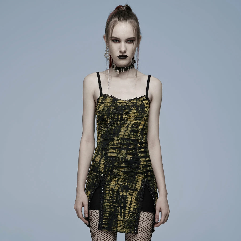 - The Punk Rave Elantra Mini Dress in Black/Yellow is a stunning addition to any gothic punk wardrobe. Designed for women who love bold and unique fashion, this dress features a striking combination of black and yellow colors.