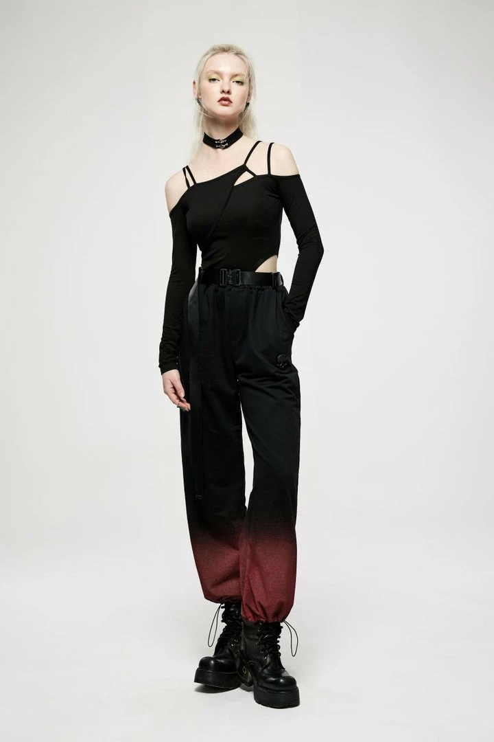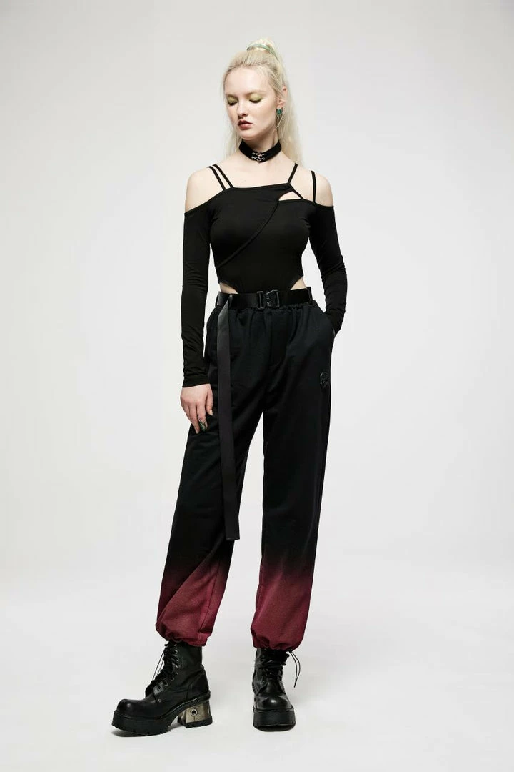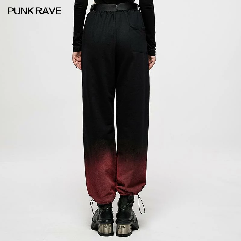 - Elevate your gothic punk style with the Punk Rave Fade To Red Trousers. These leggings feature a striking fade-to-red design, perfect for making a bold fashion statement.