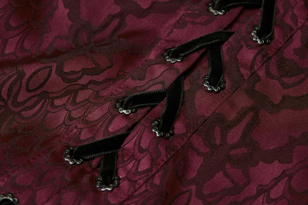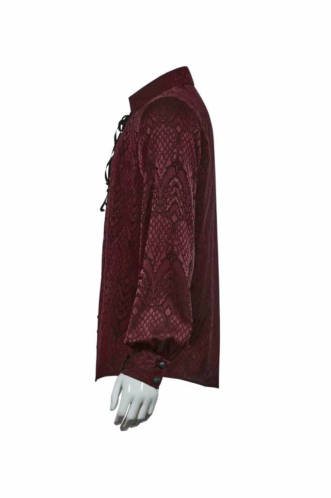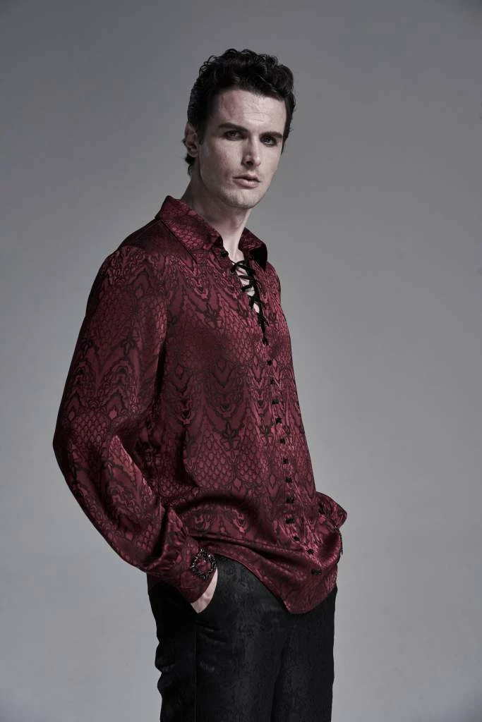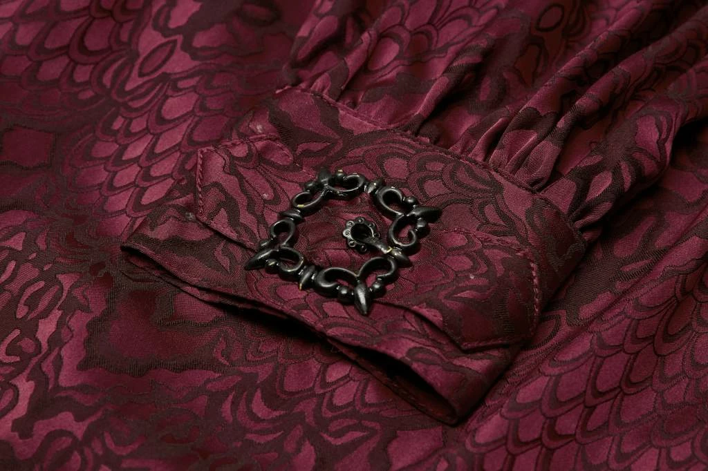 - Elevate your gothic wardrobe with the Punk Rave Kane Satin Jacquard Shirt in a vibrant red hue. This ladies’ shirt features intricate jacquard patterns, embodying the essence of punk and gothic style.