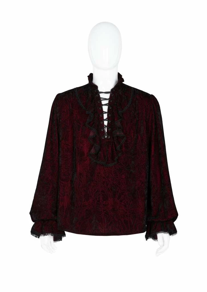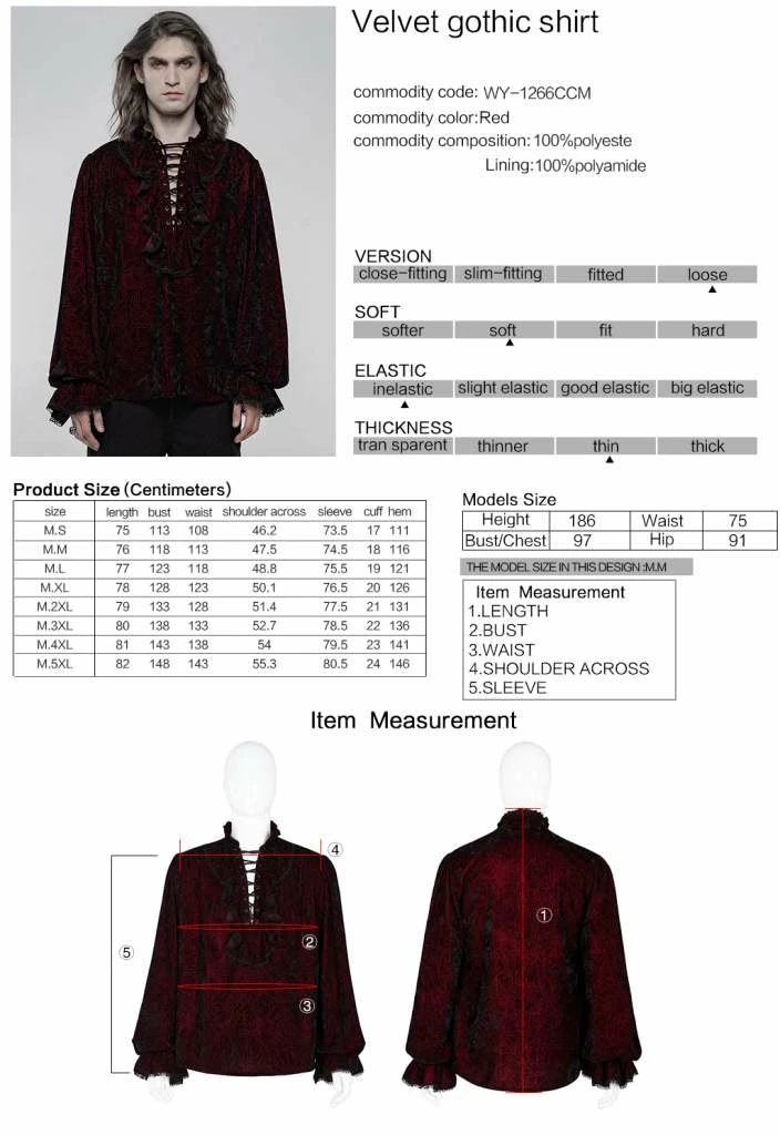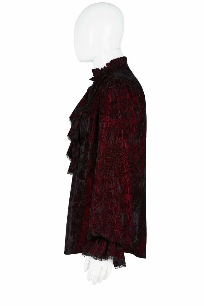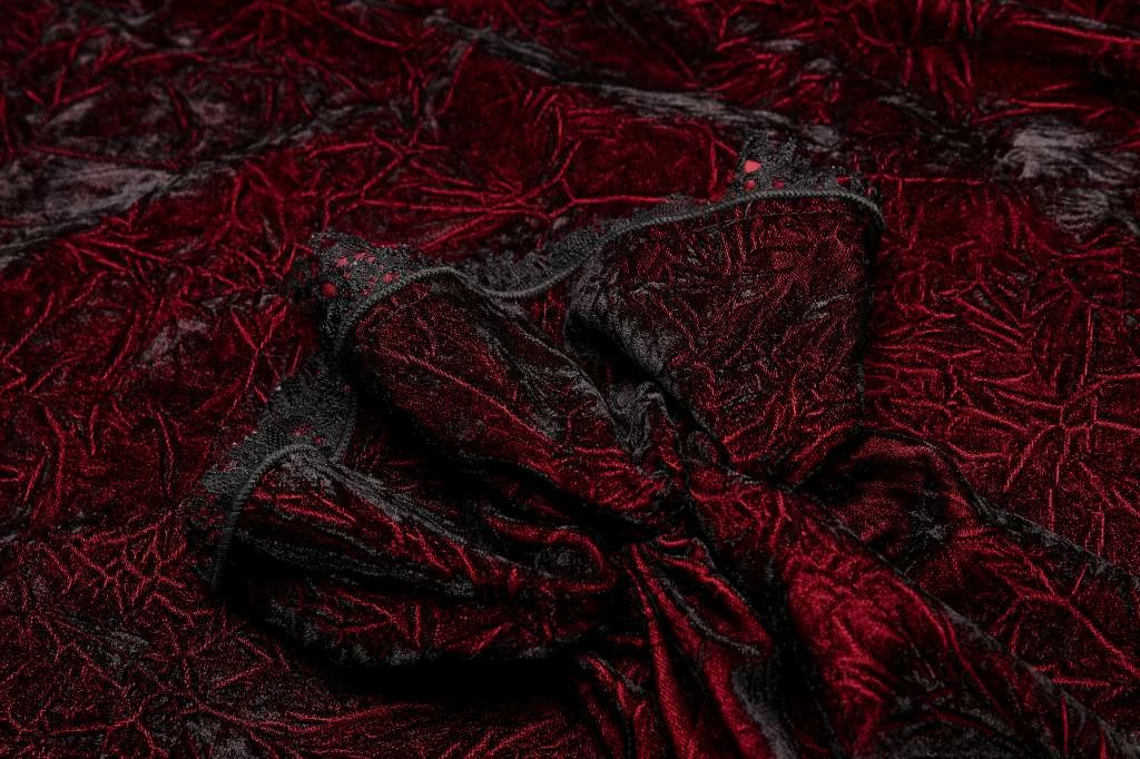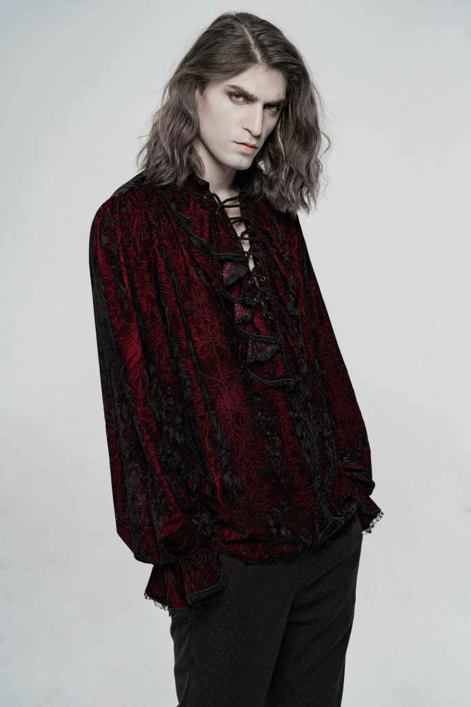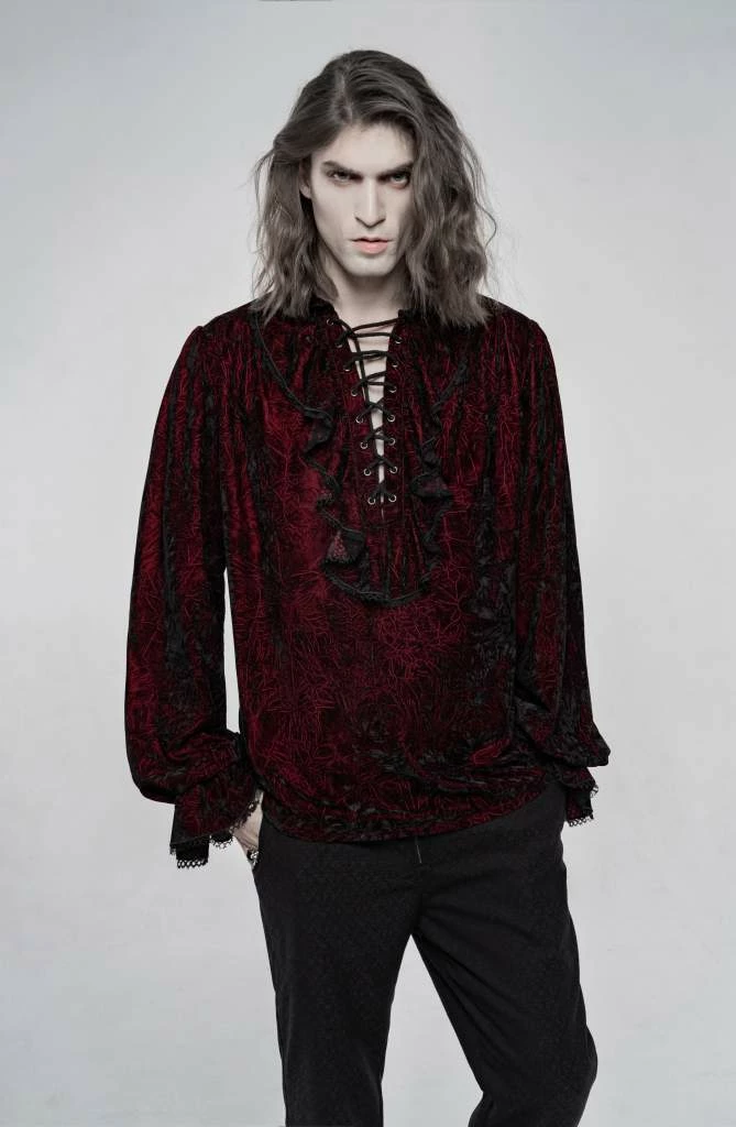 - Elevate your gothic wardrobe with the Punk Rave Men’s Crushed Velvet Top in Red. This stylish and unique shirt features a luxurious crushed velvet texture, offering both comfort and a bold statement.