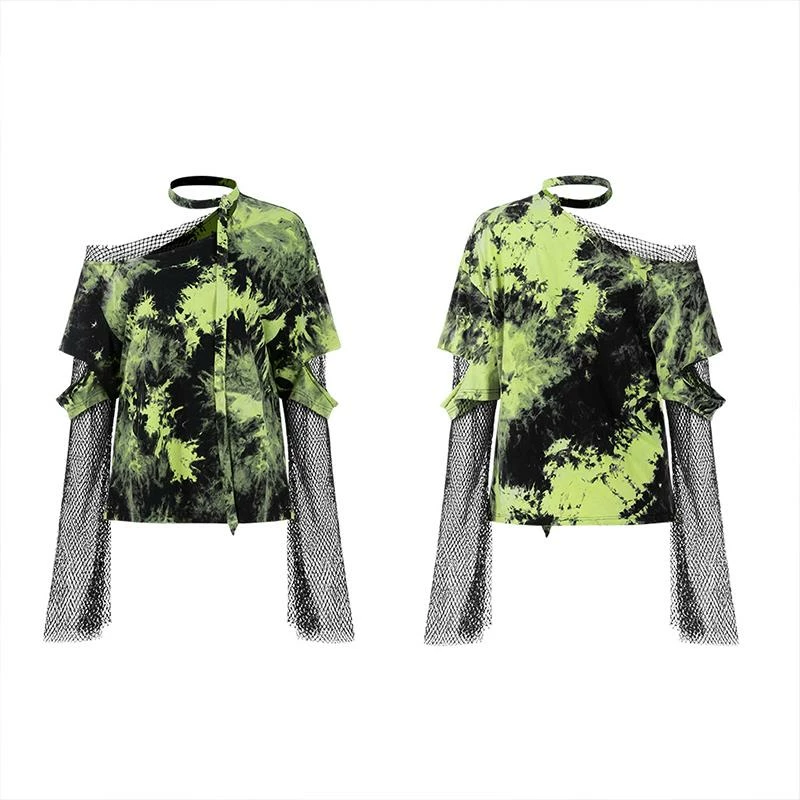 Punk Rave Sydney Tie-Dye Green Top for Women | Unique Punk Style Ladies Tops