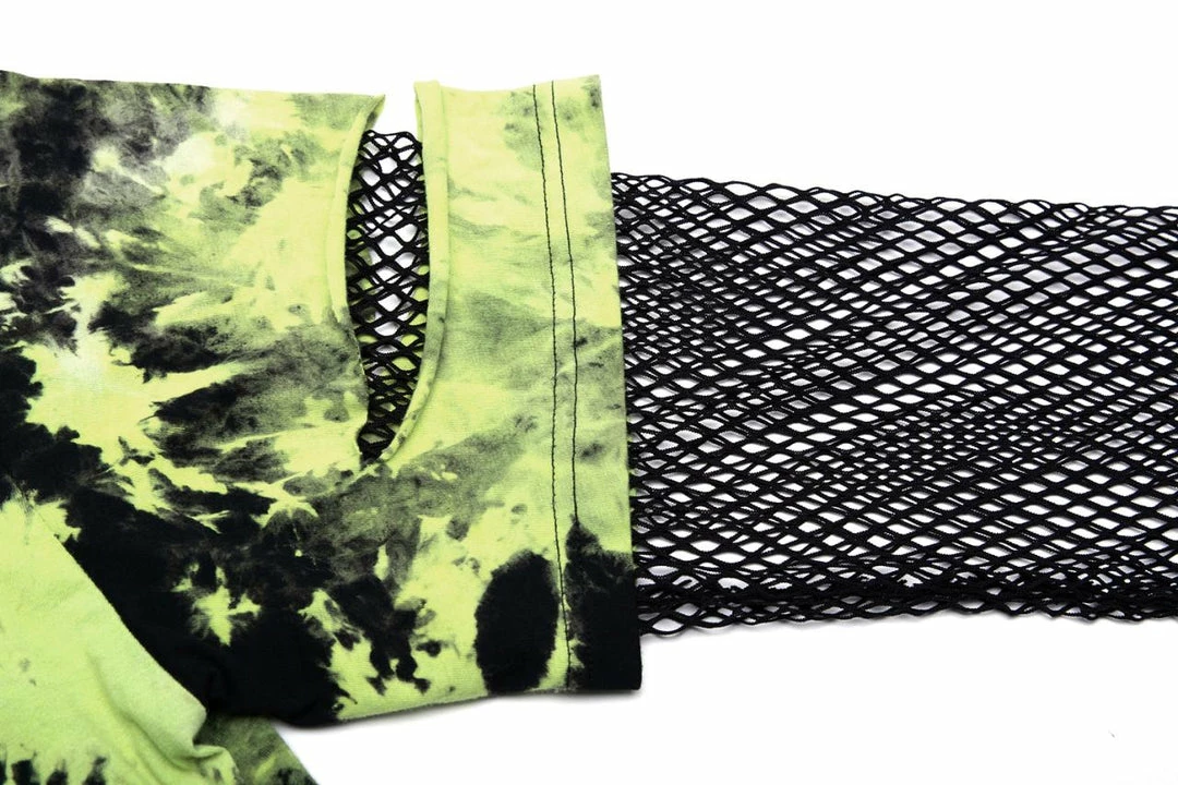 - Express your individuality with this exclusive Punk Rave top. The bold green tie-dye design is perfect for those who want to make a statement and stand out from the crowd.